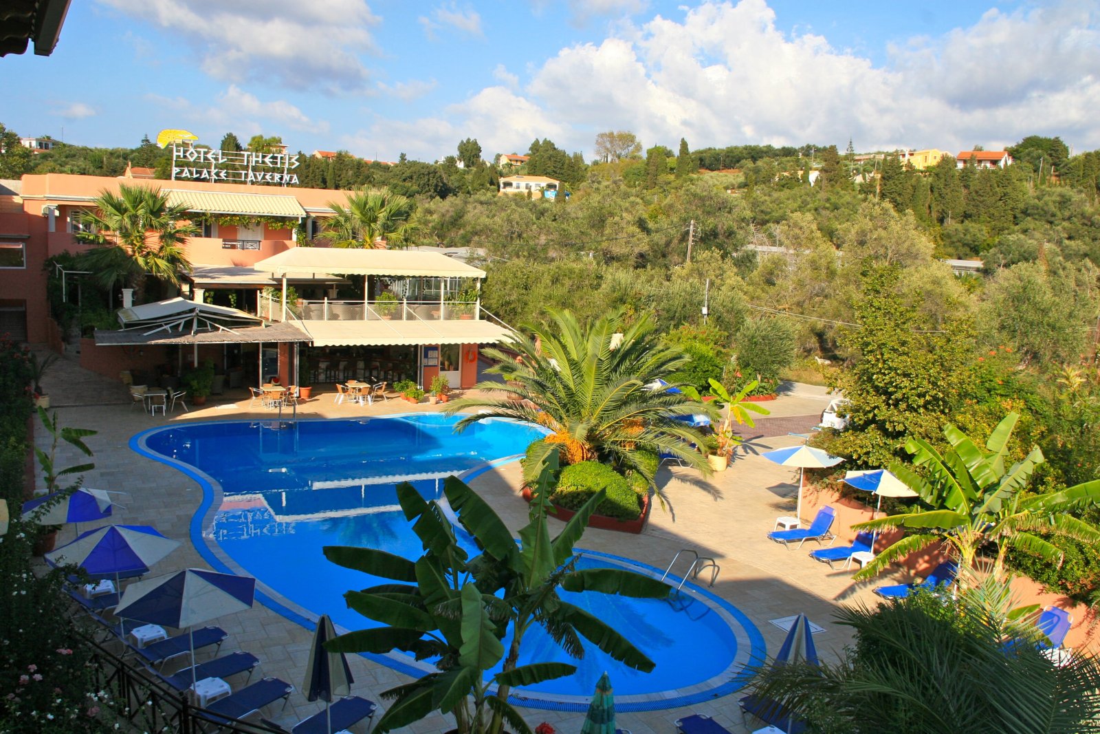 Die kleine und gepflegte Ferienanlage ist ganz zentral und doch ruhig im kleinen Ort Arillas gelegen, das gerade einmal 450 Einwohner zählt. Im ursprünglichen Fischerdorf finden sich heute heimelige Cafés, ein Bootsverleih, eine Autovermietung inkl. Reisebüro, ein paar kleine Minimärkte und sogar zwei Souvenirläden – und das nur 5 Minuten Fußweg vom Mythos Corfu entfernt. Die meisten Geschäfte, Tavernen und Bars werden von einheimischen Familien betrieben und begeistern durch ihr familiäres Flair: Ob beim Betreten eines Lokals, auf der Straße oder beim Einkaufen, überall wird man herzlich begrüßt und freundschaftlich umsorgt.
