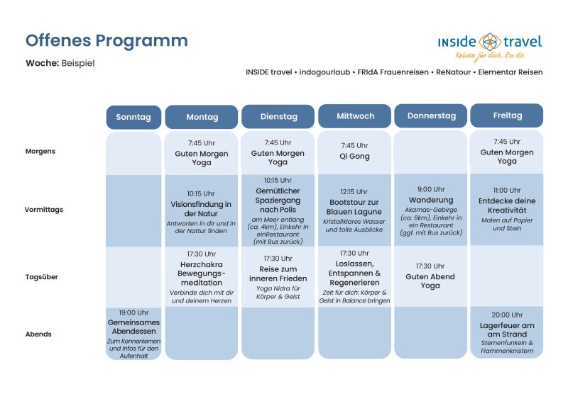 Ihr spezielles Zypern-Erlebnis: An mindestens fünf Tagen in der Woche – intensiv, aktiv, kreativ, meditativ und inspirierend!